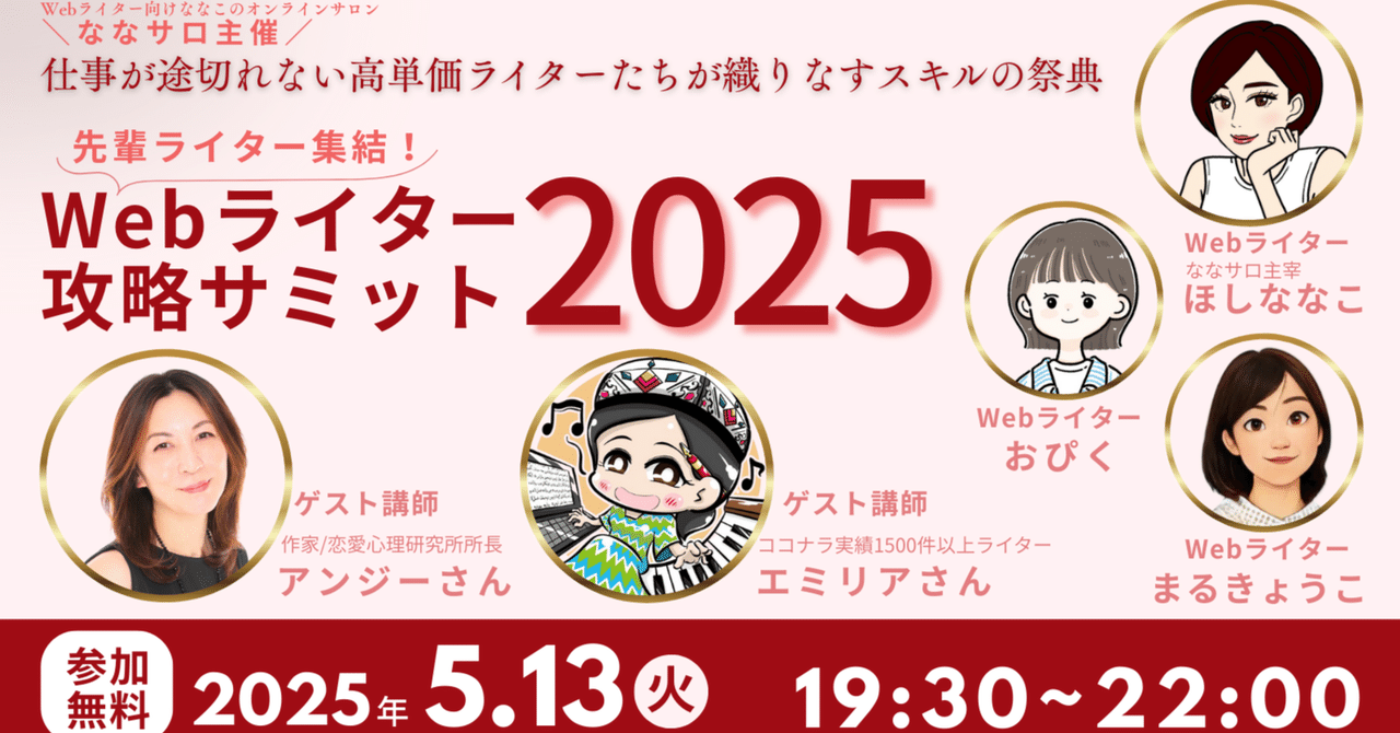 - 2025年5月 オンラインサロン【ななサロ】にて『Webライター攻略サミット』開催