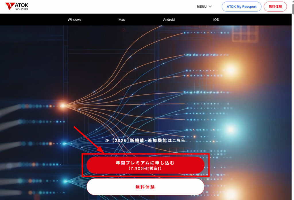 ATOKの導入は、公式サイトから購入・ダウンロードができます。